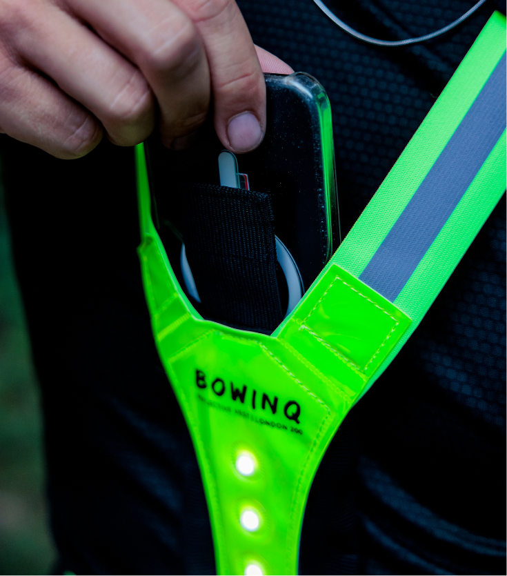 Maak kennis met de London 200 van BOWINQ. Een comfortabel en reflecterend hardloopvest, uitgerust met LED-verlichting aan zowel de voor- als achterkant.