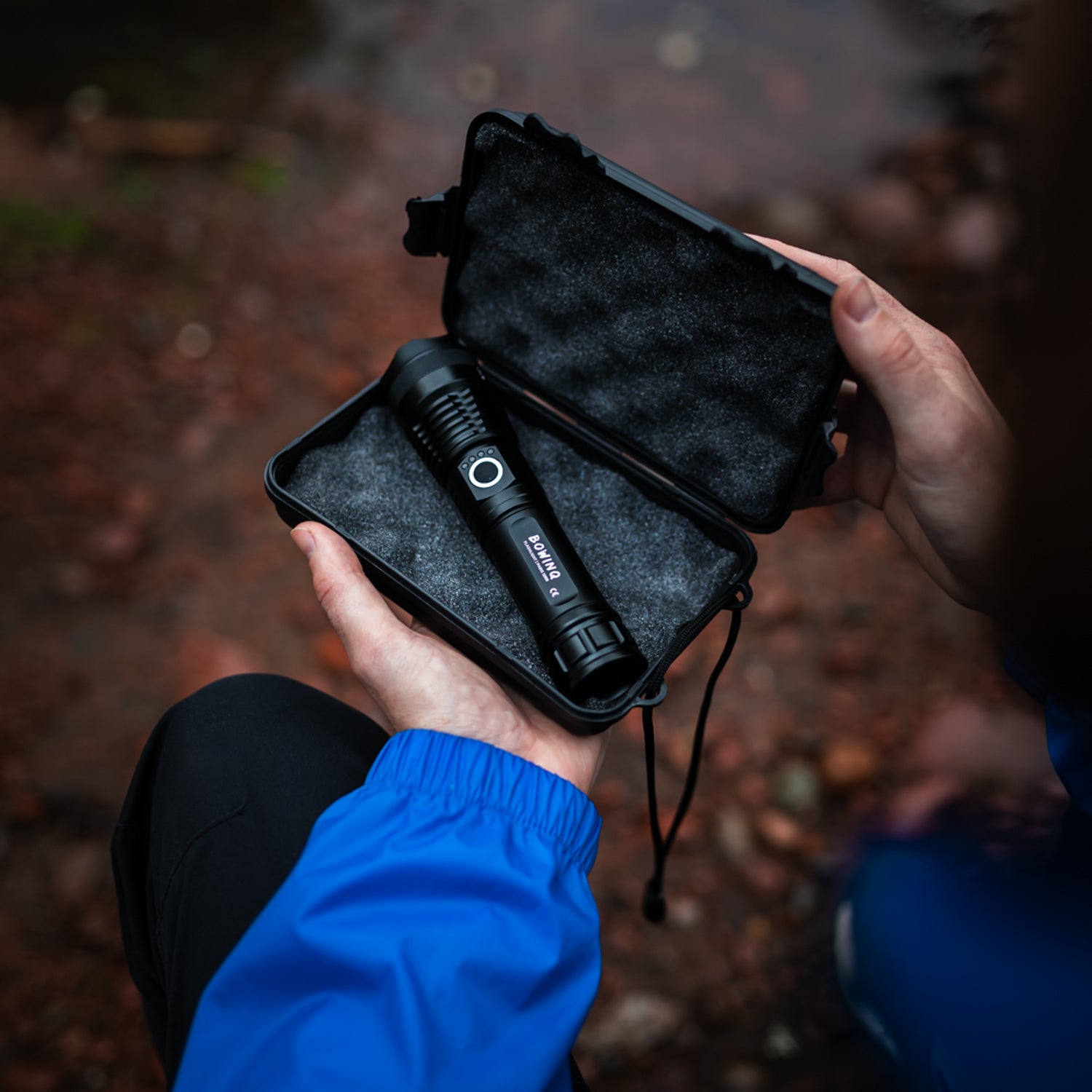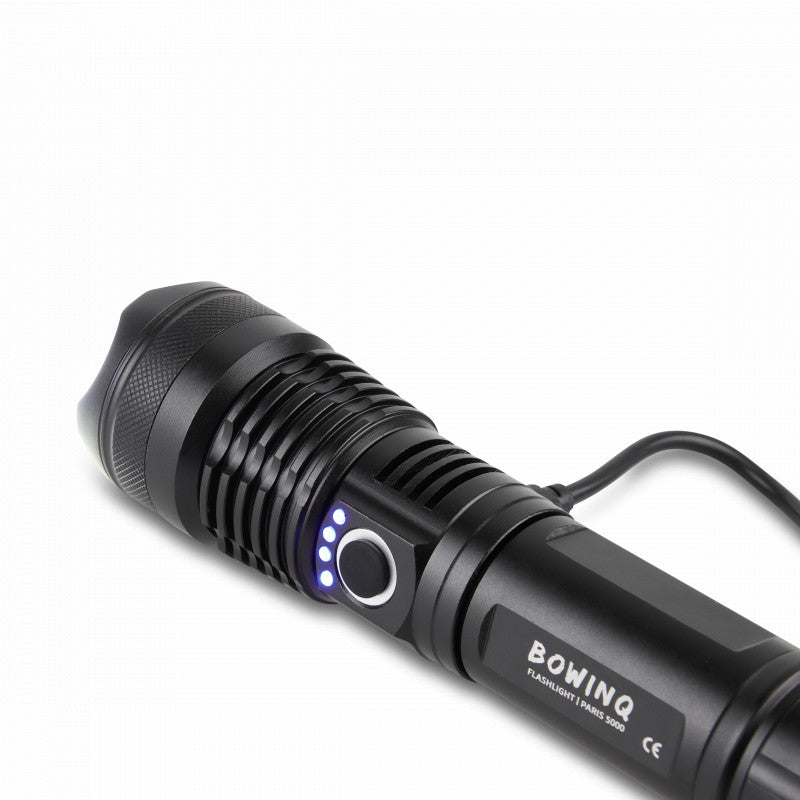 Ontdek de Paris 5000 oplaadbare zaklamp van BOWINQ. Een compacte zaklamp met 1500 Lumen lichtsterkte. Met accessoires zoals een holster, batterij extensie, laadkabel en een storage case is de Paris 5000 een rijk uitgeruste zaklamp.