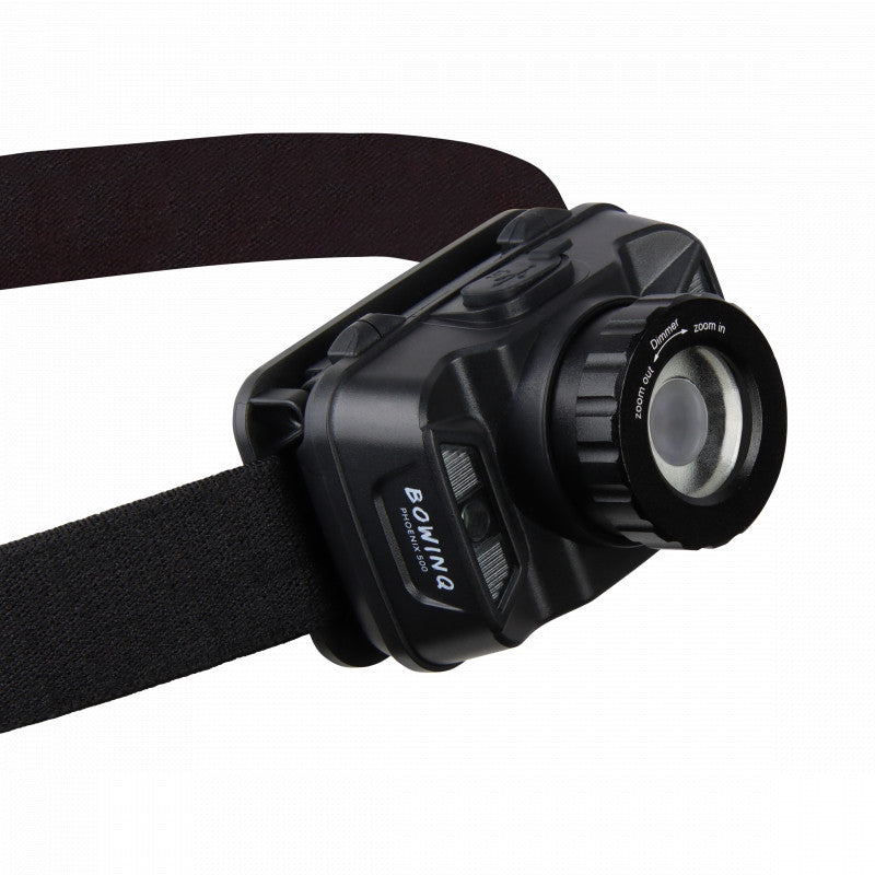 De Phoenix 500 beschikt over een aan/uit knop én over een motion sensor knop. Met de motion sensor knop kun je de hoofdlamp eenvoudig aan of uit zetten middels een handbeweging voor de lens. Erg handig tijdens activiteiten waarbij je een wisselende hoeveelheid licht nodig hebt.