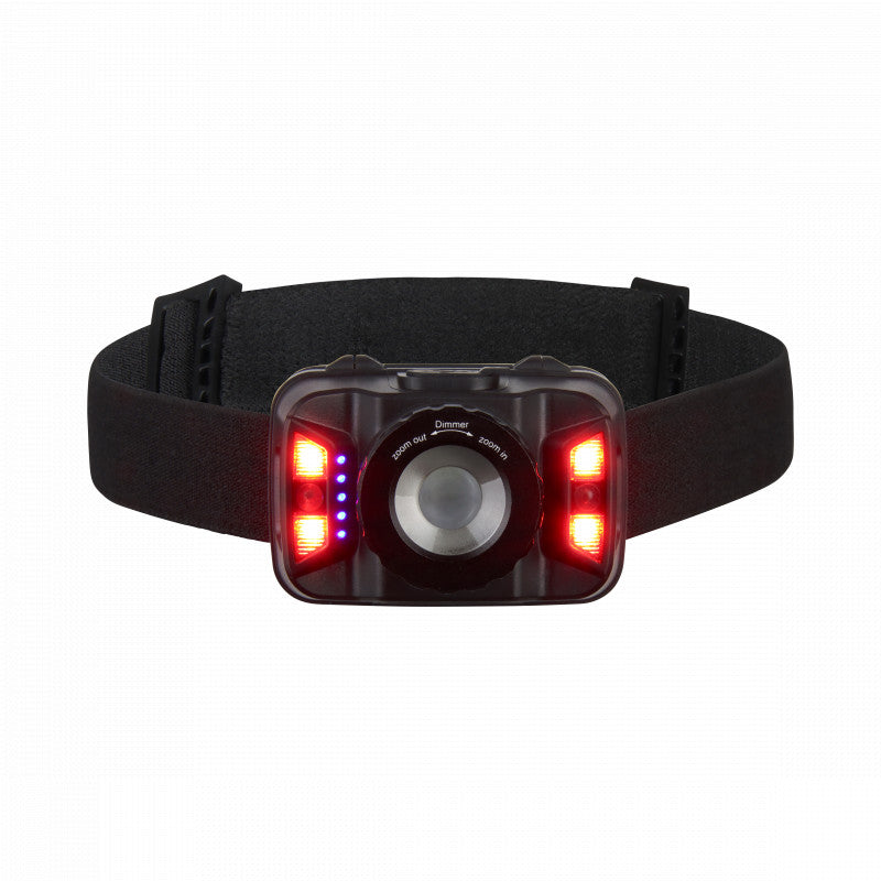 Deze oplaadbare hoofdlamp beschikt over verschillende functies. De zoomfunctie geeft het perfecte licht voor dichtbij. Liever wat verder kijken? Zet de zoomfunctie eenvoudig op focus. Met de 90° kantelfunctie richt je het licht op de perfecte spot. Reguleer de gewenste hoeveelheid licht met de verschillende lichtstanden (groot, medium en dimlicht).