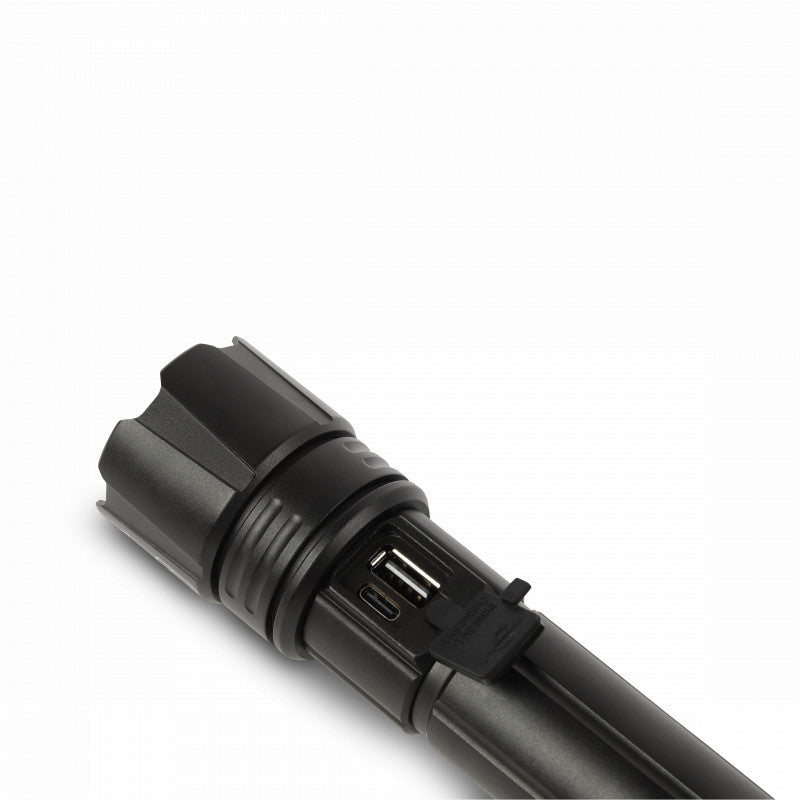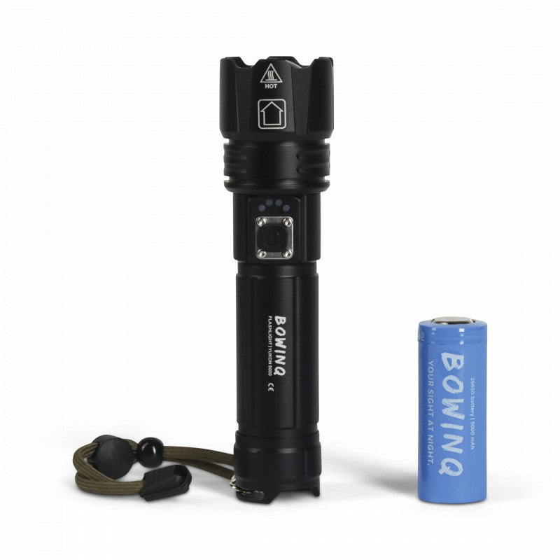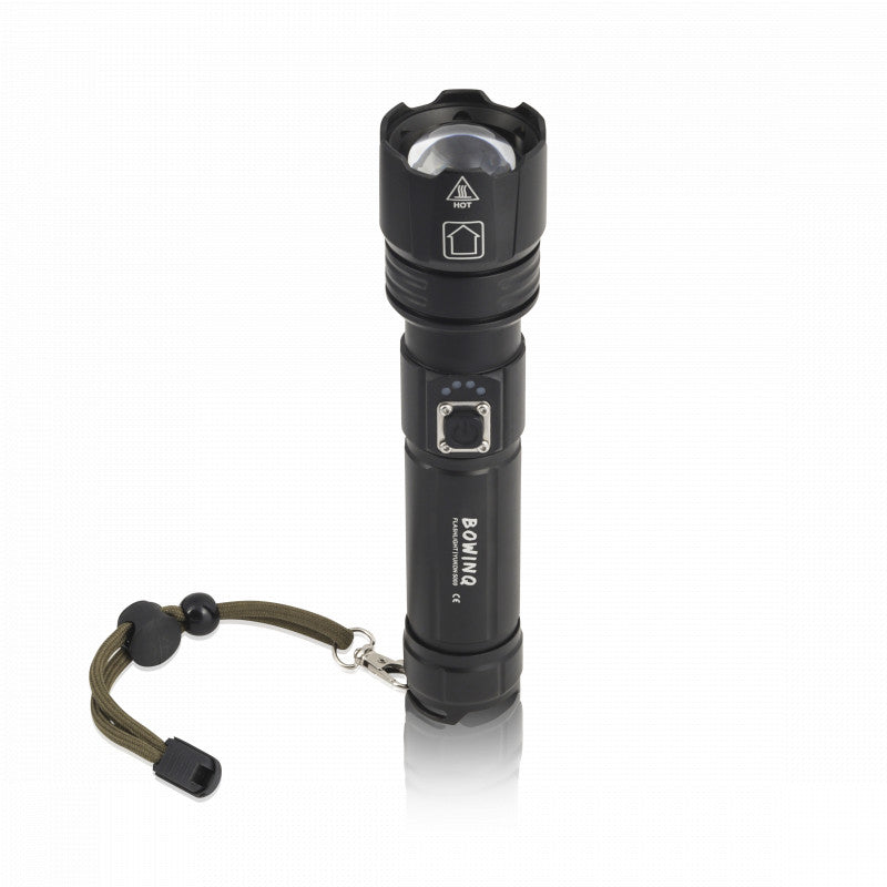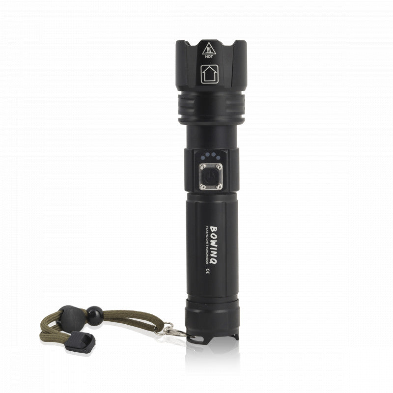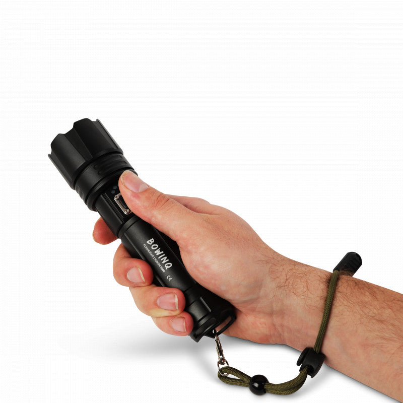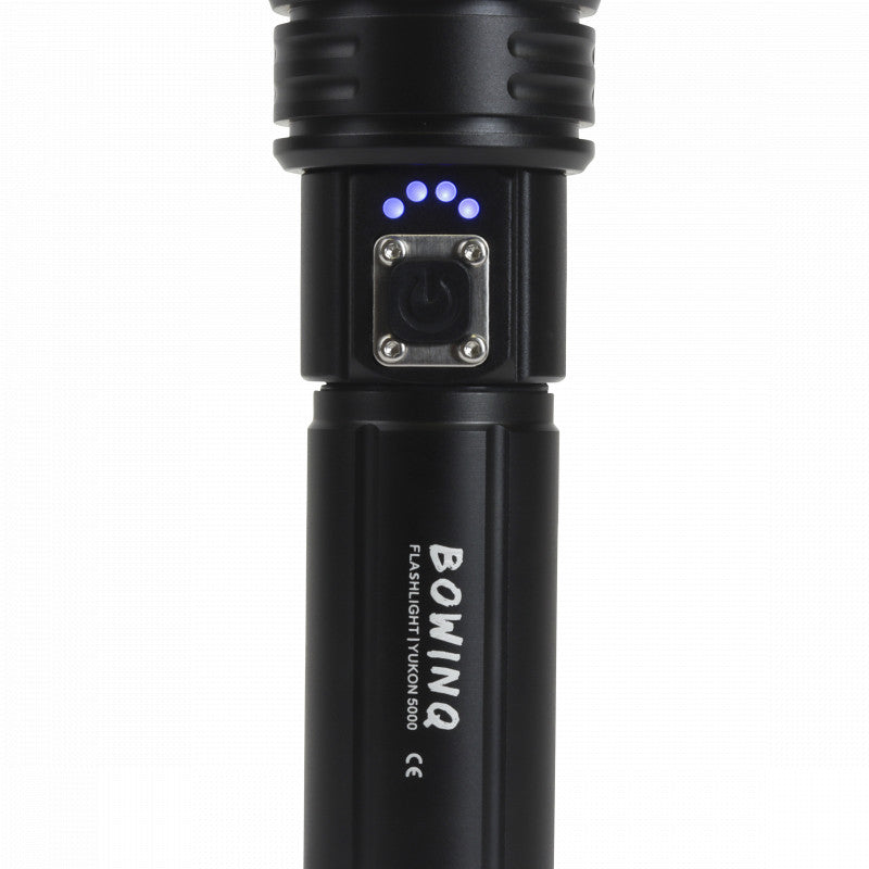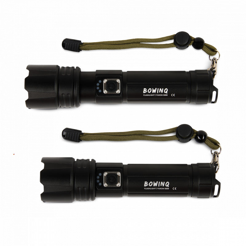 De Yukon 5000, de meest robuuste zaklamp uit de BOWINQ familie. Deze oplaadbare zaklamp is gemaakt van solide materialen en heeft met 2000 Lumen een geweldige lichtopbrengst.